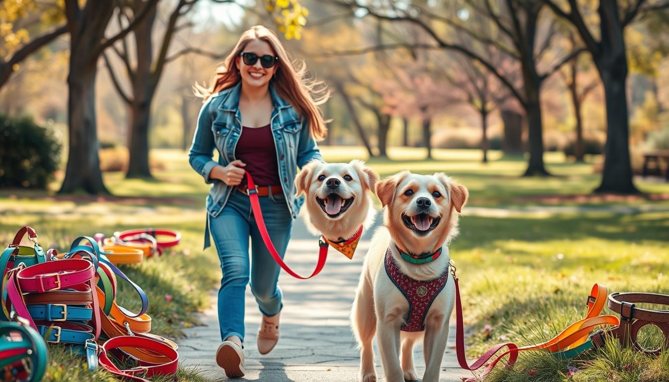 Para tutores com mais de um cão, existem acessórios que permitem controlar vários animais com uma única guia, facilitando o manejo.